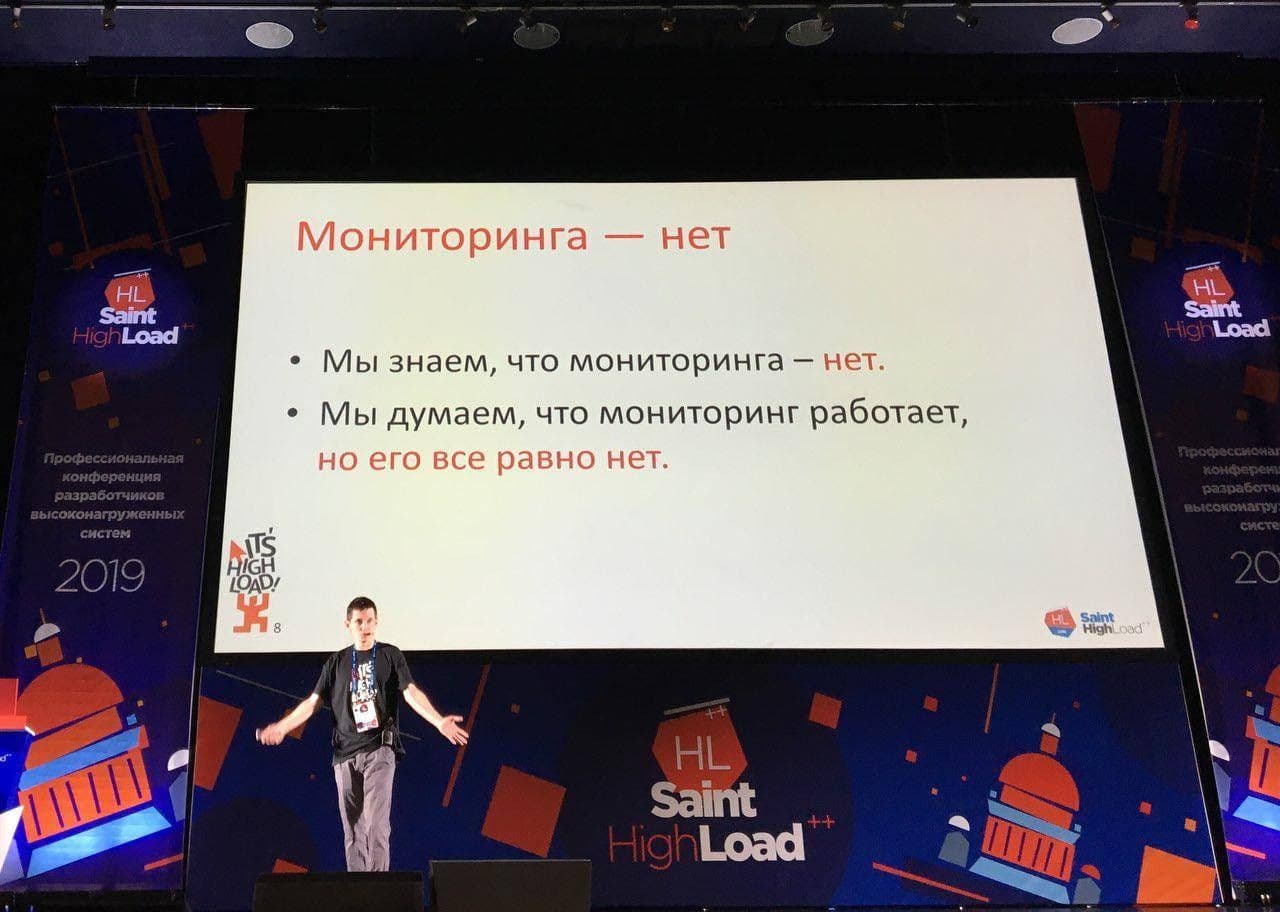 В отношении организации системы мониторинга я рискну сказать, что… проектов с грамотным мониторингом не существует. И ситуация настолько плохая, если что-то упадёт, есть риск, что это останется незамеченным — все ведь уверены, что «всё мониторится».